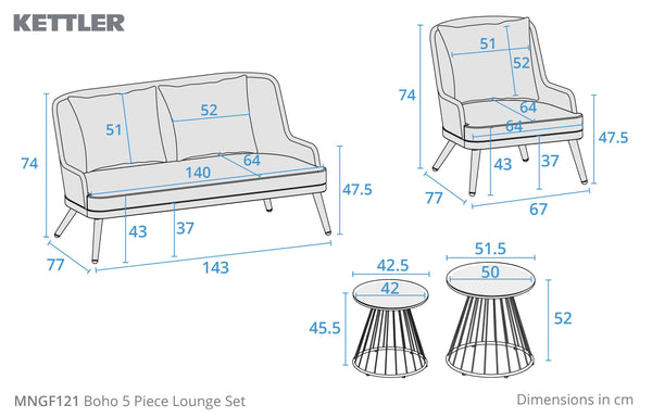 The Boho collection also features a matching balcony set and dining table and chairs to complete your outdoor oasis.