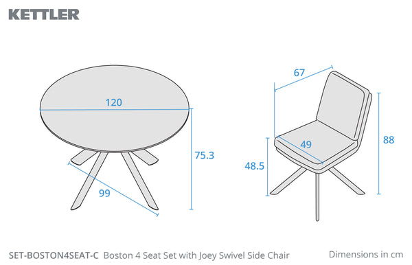 Complementing the table is the swivel Joey Side Dining Chair, known for its contemporary design and reliable comfort. Together, this set offers a modern, space-efficient dining solution that’s ideal for kitchens, apartments, or any home where style and practicality go hand in hand.