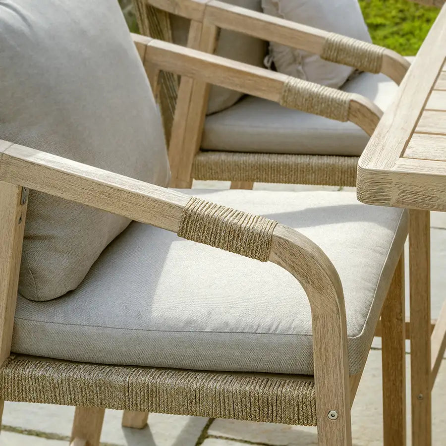 To ensure you and your guests stay comfortable for hours, the set is complemented by plush back and seat cushions that offer the perfect balance of support and relaxation. To create a complete set pair the chairs with the Cora Bar Table. Whether you’re hosting a casual brunch, an evening cocktail party, or simply enjoying a quiet moment outdoors, the Cora Bar Set is the ideal choice for creating memorable moments in style.