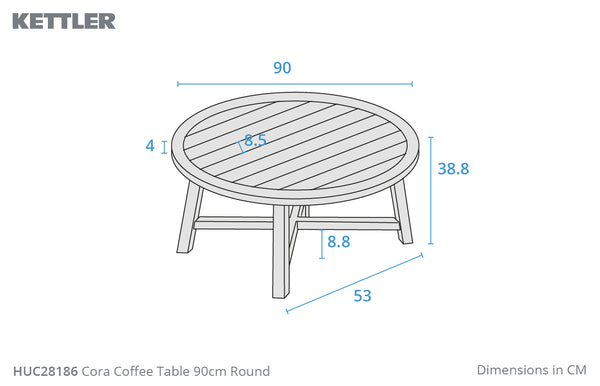 With a 90cm round tabletop, the coffee table is an ideal size to enjoy snacks and drinks on.