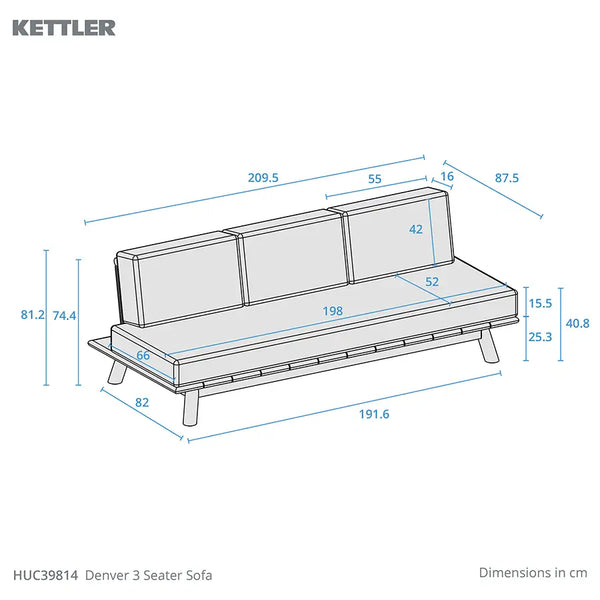 Combine this sofa with other items from the Denver range to create your dream indoor or outdoor seating area. Available separately are matching lounge chairs, coffee tables and two-seater sofas, along with accessories like protective covers.