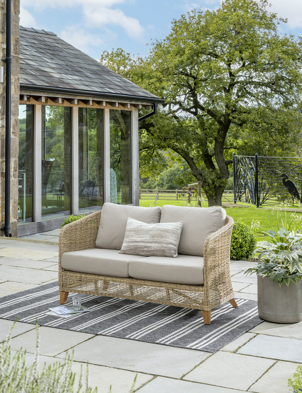 With its striking seagrass-effect weave and FSC-certified teak frame, the Durban 2-Seat Sofa brings a fresh and luxurious style to your outdoor or indoor space. Designed with both aesthetics and comfort in mind, it offers deep cushions and a unique look that stands out from traditional wicker sets. Crafted from weatherproof hand-woven synthetic wicker, this sofa is built to withstand the elements and provide lasting beauty and comfort throughout the year.