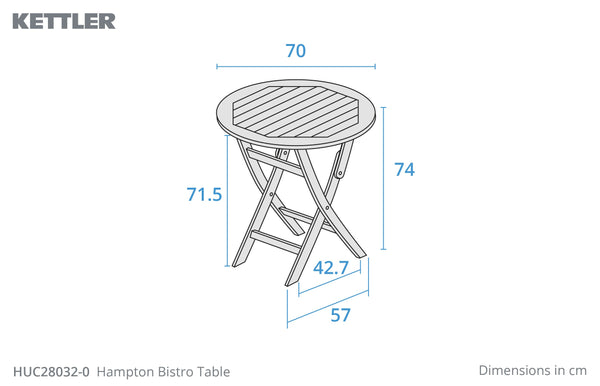 Introducing the Kettler Hampton Bistro Set—a charming and space-saving solution for intimate outdoor dining. This elegant set includes two folding bistro chairs and a 70cm round folding table, all crafted from FSC®-certified eucalyptus wood, known for its natural weather resistance and durability. The compact, foldable design makes it ideal for patios, balconies, or smaller gardens, allowing for easy storage when not in use. Part of the Hampton collection, the set pairs beautifully with other pieces in the range, offering a cohesive and timeless look for your outdoor space.