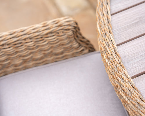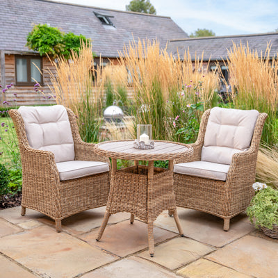 The set features a stylish 70cm table paired with two wicker chairs, each crafted with premium 6mm twisted wicker for a handwoven, natural look. The RainSafe cushions offer lasting comfort, while the lightweight design makes it easy to move and position wherever you please.