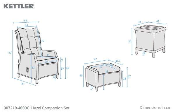 Perfect for morning coffees, afternoon reading, or evening drinks for two, the Hazel Companion Set brings comfort, craftsmanship, and timeless style to smaller outdoor and indoor spaces. Ideal for balconies, patios, or compact gardens, this elegant set creates a relaxing retreat wherever it’s placed.