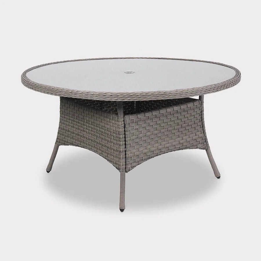 The elegant Charlbury round dining table is sure to impress your guests. With a unique weave design which includes a mix of 3mm flat wicker and 5mm double half round wicker, beautifully woven around the sturdy aluminium frame. The wicker is completely weatherproof, and UV protected, so you can keep the table outdoors all year round without it deteriorating or fading in colour. The glass tabletop provides a smooth finish and can be easily cleaned.
