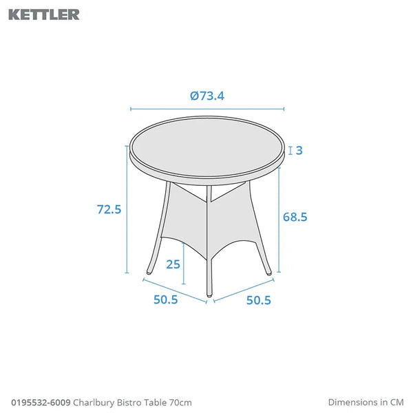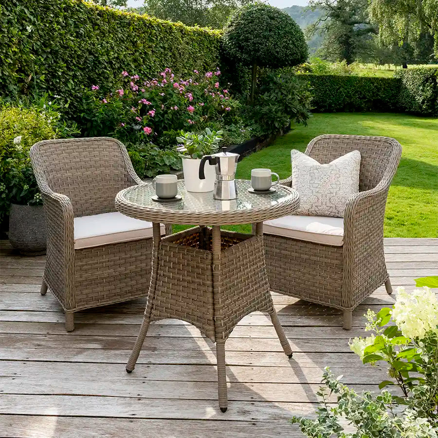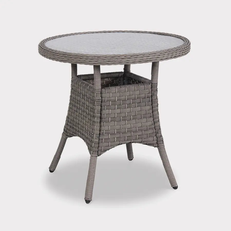 The Charlbury 70cm Bistro table is made with a strong, yet lightweight aluminium frame, which is beautifully covered with a mix of flat and half round synthetic rattan, to give it a unique style. The hardened glass tabletop provides a smooth finish and is securely held in place with the thick round wicker. With very little maintenance required the Charlbury table is suitable to be left outdoors all year round, as the wicker is waterproof, and UV protected.