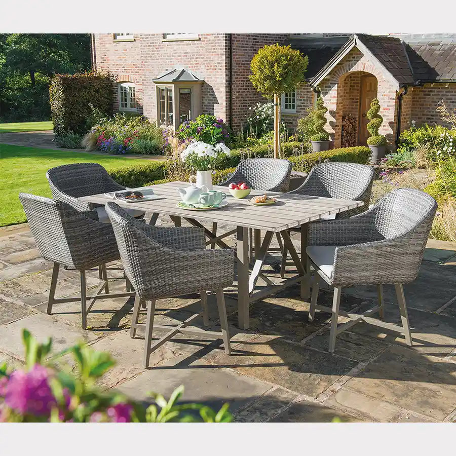 The two-tone flat wicker gives the LaMode garden chair a distinct style that fits into most gardens. Match the LaMode Chair to the choice of rectangular tables from the same range. The table has a aluminium slat top, which are hand painted to give it a natural weathered wood effect.