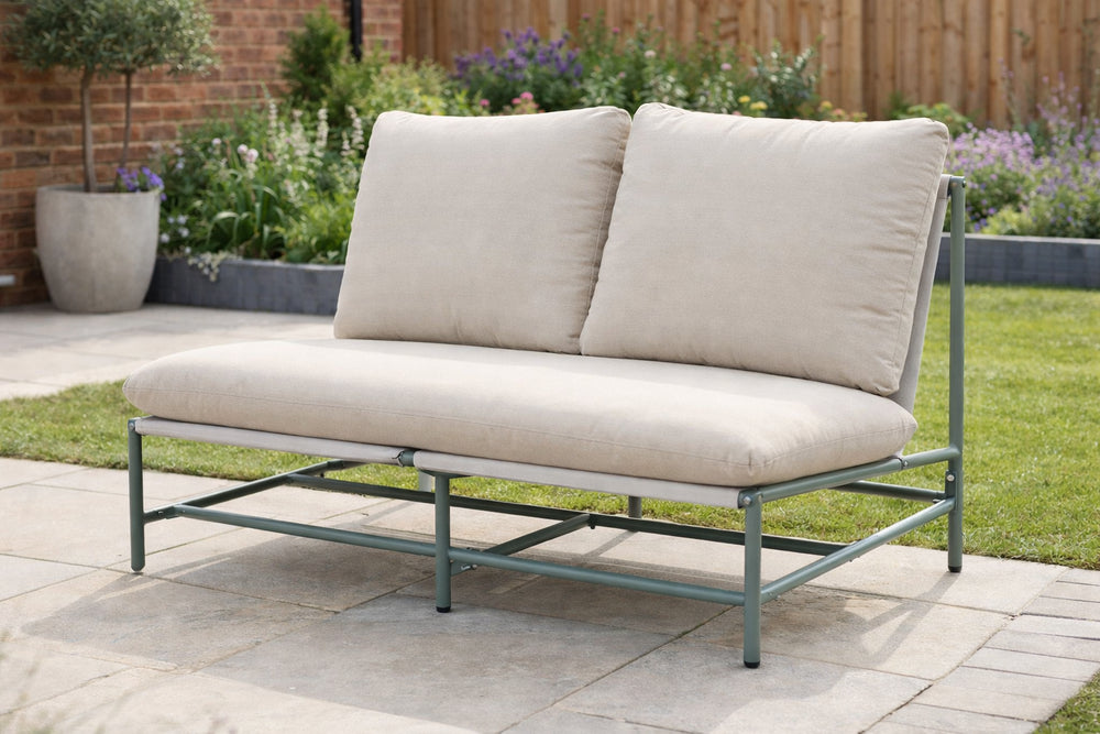 Create a relaxed, contemporary retreat with the Leaf 4 Seat Lounge Set, featuring a minimalist moss green aluminium frame. This stylish set includes a two-seater sofa and two spacious side chairs, offering a modern, organic aesthetic that complements any garden, patio or conservatory. It's the perfect choice for those who want a sophisticated space for morning coffee or casual afternoon lounging.