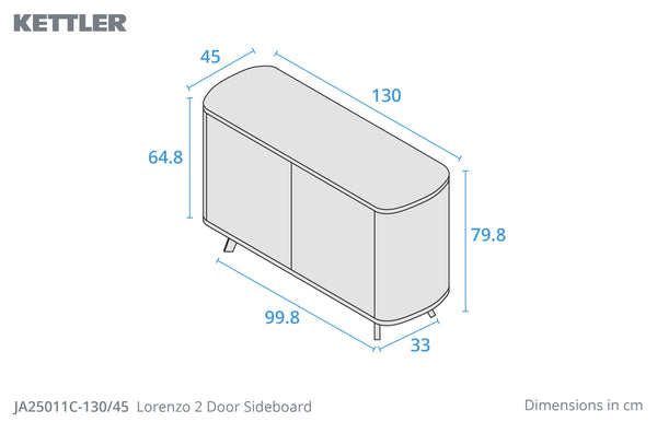 Inside, two generous shelves sit behind soft-close doors—perfect for organising everything from plates and glasses to party essentials. With minimal setup required, this sideboard arrives fully built—just attach the legs and it's ready to go. Sleek, functional, and effortlessly chic, the Lorenzo Sideboard is the ideal companion for a well-dressed dining room.