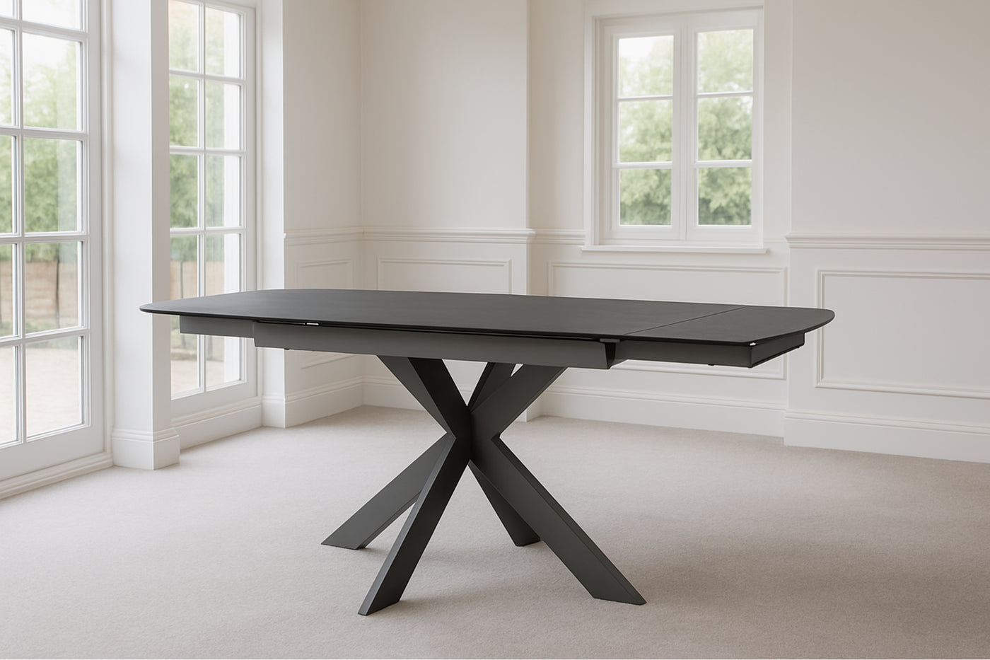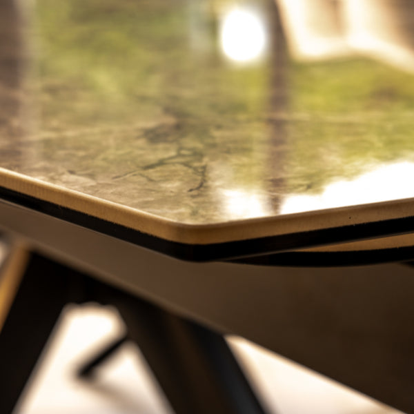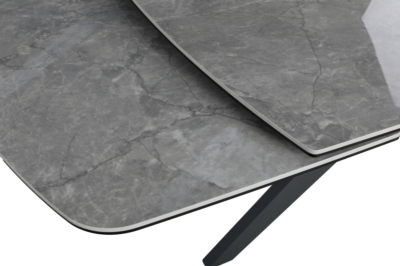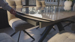 The Lorenzo table boasts a ceramic glass tabletop that is scratch-resistant, heat-resistant, and easy to maintain—perfect for modern living. Its extendable design includes discreet extension leaves at each end, allowing you to expand the table effortlessly when hosting extra guests or accommodating a growing household.