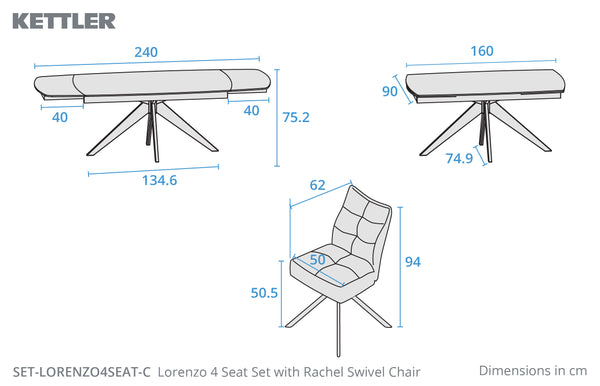 Elevate your dining experience with the Lorenzo 4-Seater Dining Set, featuring a sophisticated boat-shaped extendable table and stylish Rachel Swivel Chairs. Designed for both everyday use and special gatherings, this set combines sleek design with smart functionality.