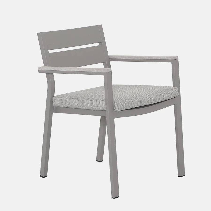 New for 2025, the Marina Dining Chair combines simple elegance with a fresh, modern colourway, making it a versatile addition to any outdoor space. Designed to pair seamlessly with the Marina dining table, its ergonomic shape and weatherproof seat pad ensure lasting comfort for leisurely meals and gatherings. Crafted from lightweight yet durable aluminium with stylish wood-effect arms, the Marina Dining Chair is as practical as it is stylish - perfect for effortless outdoor living.