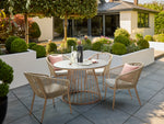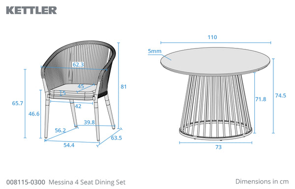 The synthetic wicker is weatherproof and can be left outdoors all year round (excluding cushions). We recommend cleaning when required with warm soapy water avoiding any harsh chemcials or using the Kettler wicker care kit. Remove dust regularly with a clean soft brush and wipe down with a clean damp cloth. Use pads, mats and coasters under plates, glasses cups etc to protect them from scratches, spills, stains and heat damage. Wipe spills immediately to prevent staining. Tree sap and bird droppings should be cleaned off immediately. Take care if using near a barbecue. Charcoal sparks could cause melting. Do not leave hot BBQ tools or other hot items directly on the table. Some styles of glassware can act as a magnifying glass in strong sunlight and will cause damage.