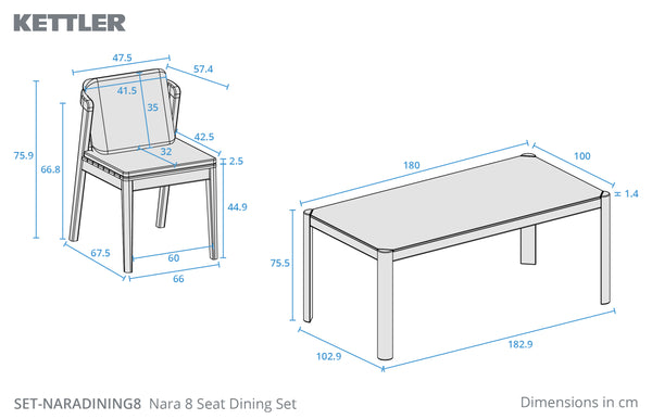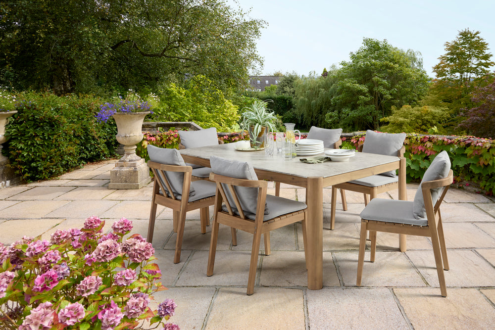 Remove dust regularly with a clean soft brush and wipe down with a clean damp cloth. Use pads, mats and coasters under plates, glasses cups etc to protect them from scratches, spills, stains and heat damage. Wipe spills immediately to prevent staining. Wood is a natural material which reacts to weather conditions. Depending on weather type, the wood can swell or dry resulting in small cracks. The risk can be minimised by cleaning and/or treating the furniture at regular intervals and keeping it clean and dry with a soft clean cloth. We would advise applying Kettler hardwood shield (available to buy from our website) 2-3 times per year (table tops) and 1-2 times per year for chairs.