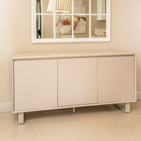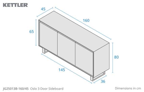 Add a touch of refined modern style to your dining area with the Oslo 3-Door Sideboard—crafted to match beautifully with the Oslo Dining Set. Its clean lines and contemporary finish make it an elegant storage solution that fits right in with today's interiors.