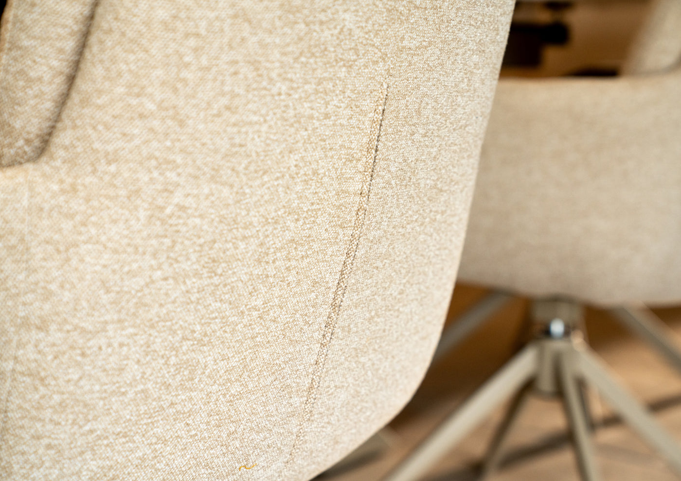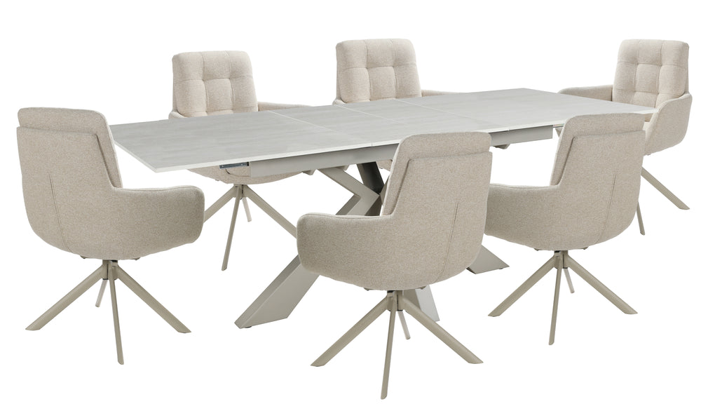 Complementing the table are six Joey Swivel Armchairs, offering a perfect combination of comfort and contemporary design. With their cushioned seats, supportive armrests, and smooth swivel function, these chairs add both practicality and a modern edge to your dining space.