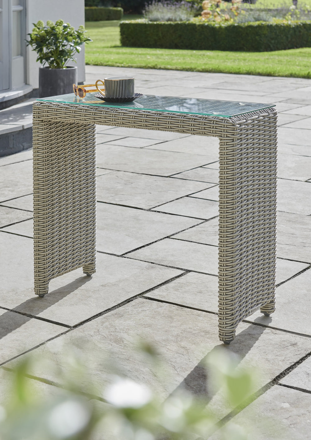Crafted with a strong aluminium frame, hand-woven synthetic rattan and a clear glass top, this lightweight table can be transported anywhere with ease. Its durable construction means you can leave it outdoors alongside the vast majority of our Palma garden furniture range, and if you’re placing it on uneven ground, the table’s adjustable footcaps keep it steady.