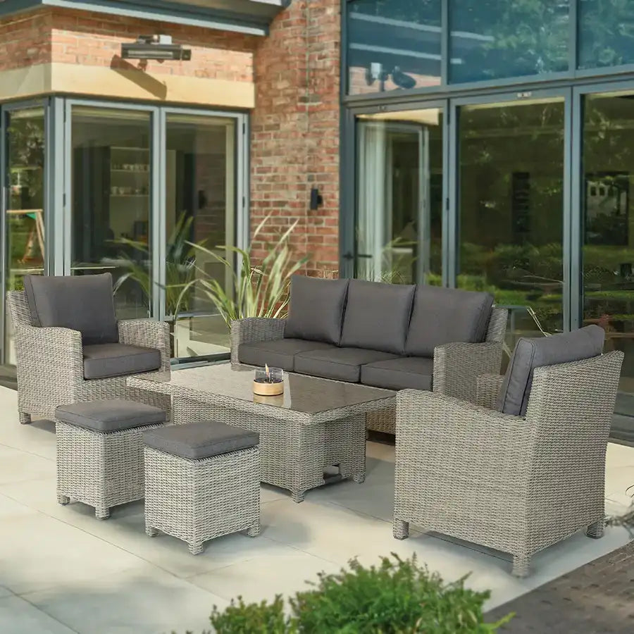 Settle down on the Palma Signature 3-Seat Sofa, constructed of durable aluminium and rattan with extra-comfortable double-piped waterproof cushions.