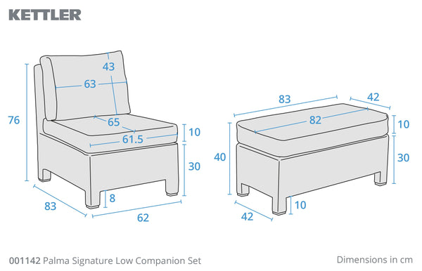 Upgrade the seating possibilities of your Palma Signature Low Lounge set with the Palma Signature Low Companion Set. This modular set of two side chairs and a table can be joined to extend your corner sofa or used separately, offering complete flexibility in how you arrange your outdoor space.