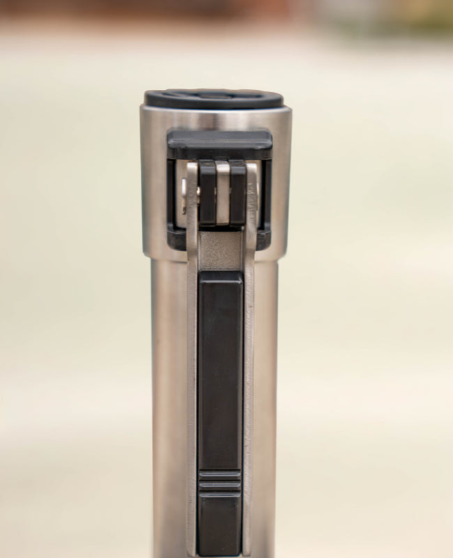 Ideal as a parasol base for dining tables, it features a stainless-steel collar that clicks securely into place with a push-and-release mechanism. A strong locking lever then holds the parasol firmly, reducing movement and ensuring reliable support for larger parasols in outdoor dining areas.