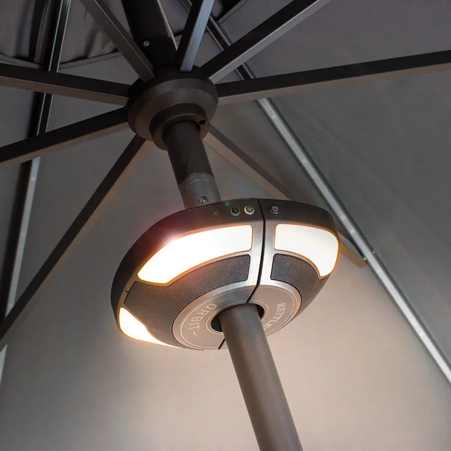 The universal Wireless Speaker for Parasols connects to your mobile phone to play high-resolution audio while you relax on your garden furniture. Built-in LEDs light up your garden table when night falls, keeping your outdoor dining party going. The clamp design fits parasols poles with a diameter of 32-38mm including all Kettler parasols.