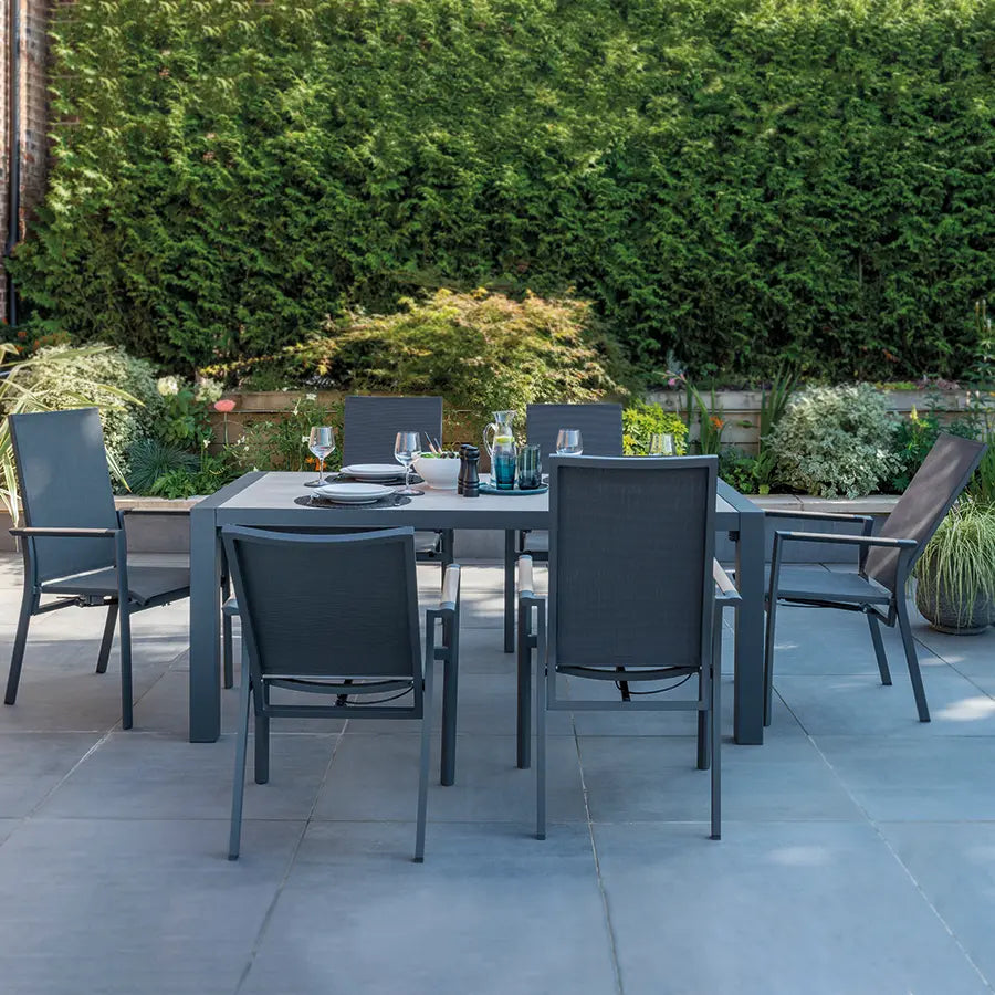 The weatherproof and rustproof materials of this set mean it can remain outdoors throughout the year, maintaining its durability and style season after season. Whether you're hosting a large family gathering or enjoying a quiet dinner, the Surf Dining Set offers both luxury and practicality for your alfresco space.