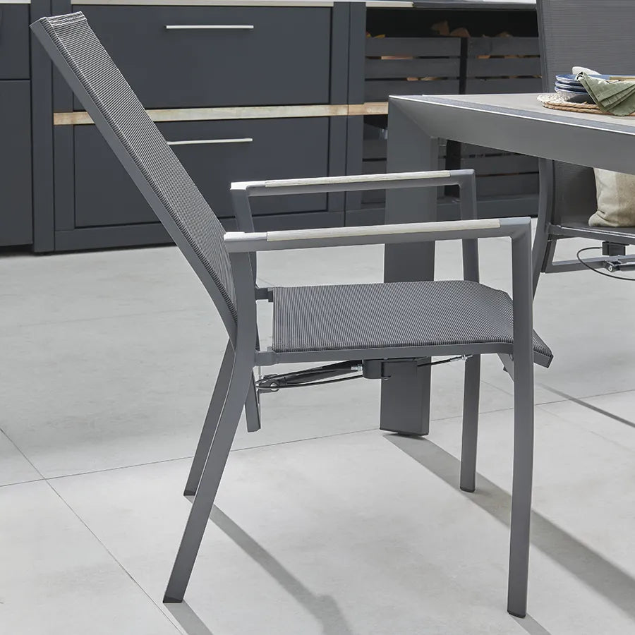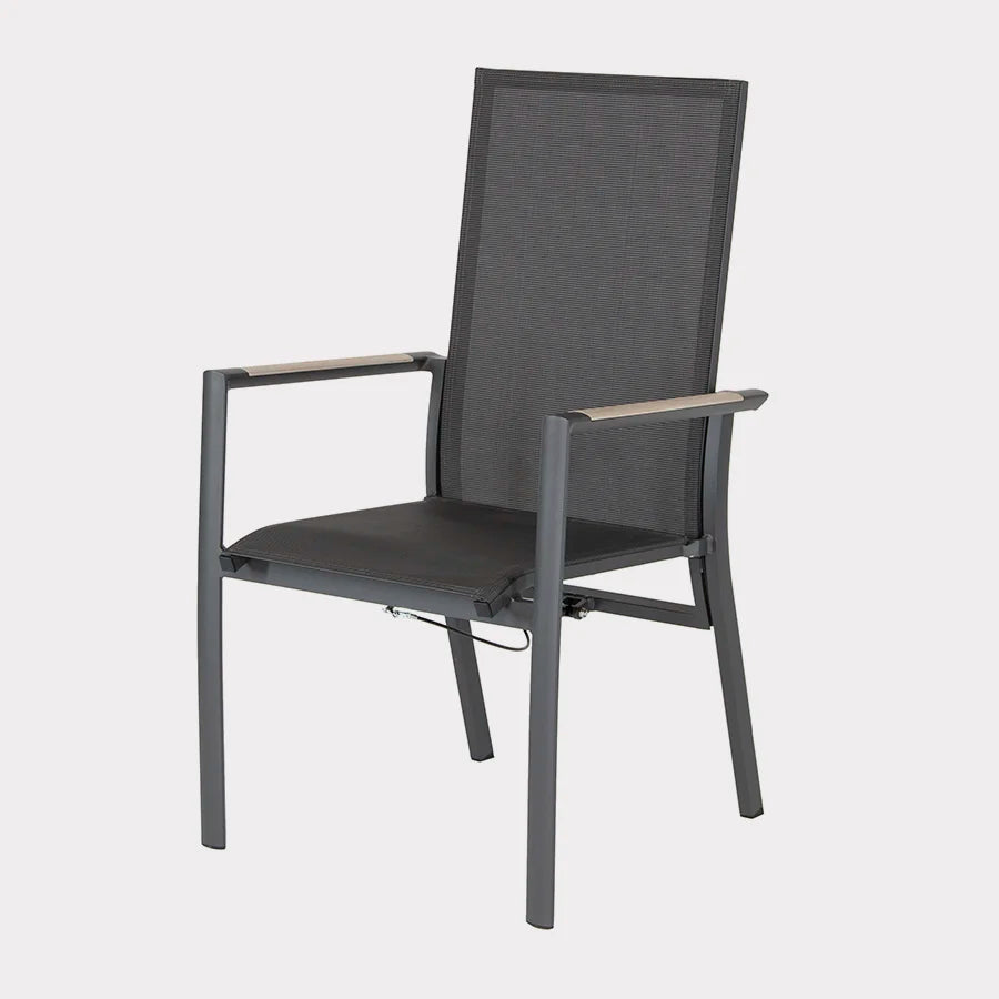 The Surf Active Multi-Position Dining Chair will make a practical addition to your garden or patio. The lightweight and sturdy aluminium frame is powder coated, keeping the chair well protected against the outdoor elements. The back and seat are made with bouncy Textile Sling providing comfort, without the need for cushions. The wide armrests have FSC® certified Teak wood slat for added durability.