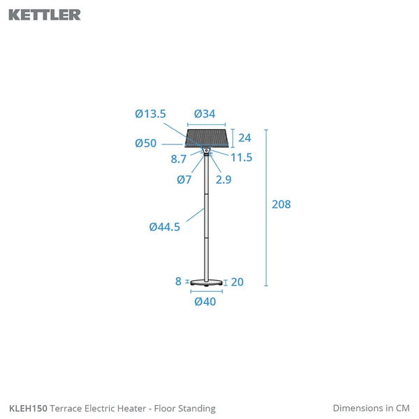 Part of the Kalos garden heating range, the Terrace Floor Standing patio heater allows you to enjoy your garden even on a chilly summer’s night. With a stylish sandy grey lampshade and an impressive heat output of up to 2000W, the patio heater will make a perfect addition to your outdoor space.