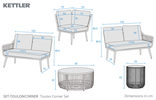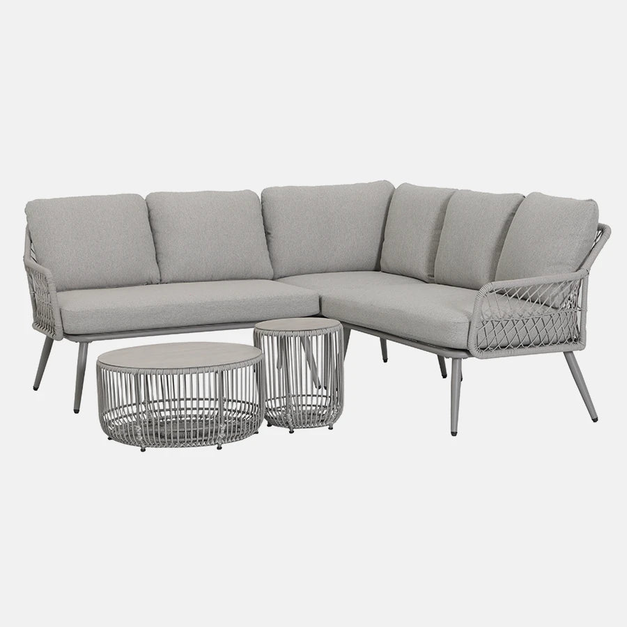 Upgrade your outdoor gatherings with the Toulon 4-Seat Corner Set, a perfect blend of style, comfort and durability. Crafted from a sturdy aluminium frame with weatherproof rope, this set promises to withstand the elements while maintaining its chic appeal. The plush weatherproof cushions offer a soft and inviting place to relax, ensuring you and your guests can enjoy hours of leisurely conversation and laughter.