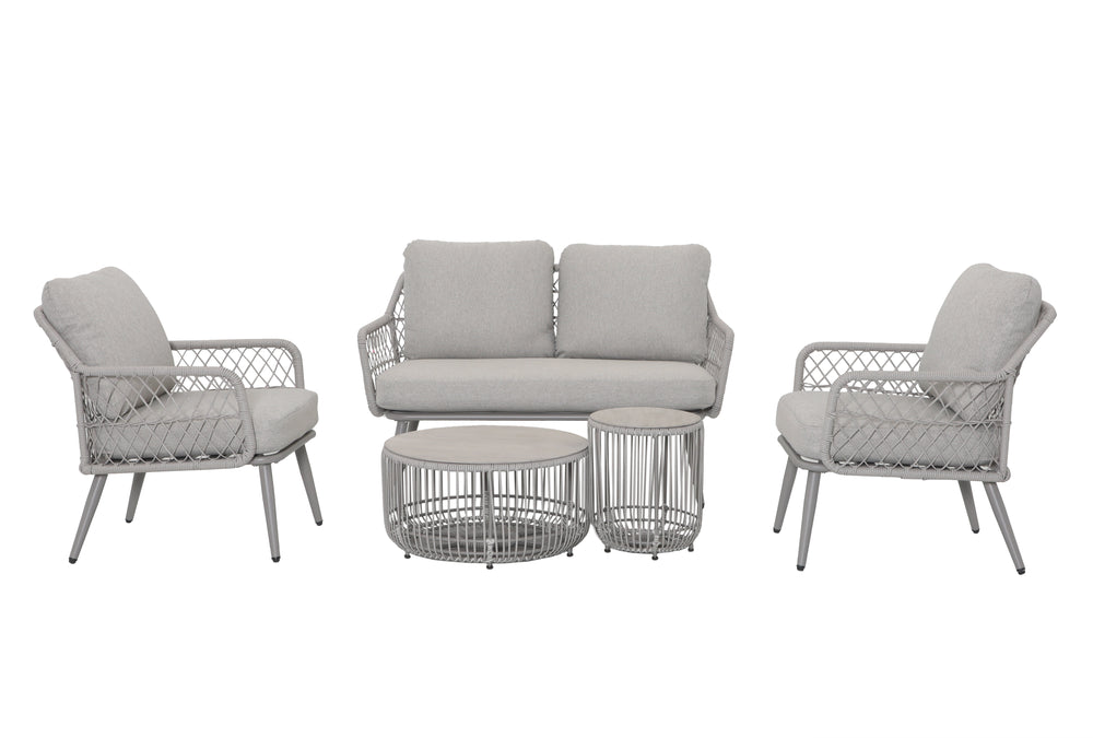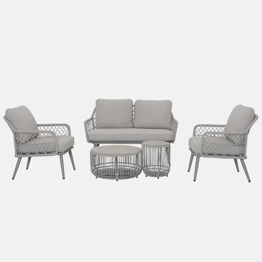 Enhance your outdoor relaxation with the Toulon 4-Seat Lounge Set, a perfect blend of comfort and style designed for contemporary living. Crafted with a robust aluminium frame and adorned with weatherproof rope, this set is as durable as it is chic. The lounge set features plush, weatherproof cushions that invite you to unwind, making it an ideal spot for casual gatherings or quiet evenings under the stars.
