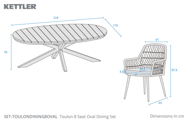 Whether you’re hosting family gatherings or a cosy dinner party under the stars, the ergonomically designed chairs provide maximum comfort, complete with weatherproof seat pads that stay fresh all year round. Stylish, comfortable and built to last, the Toulon Dining Set invites you to enjoy endless al fresco dining moments.